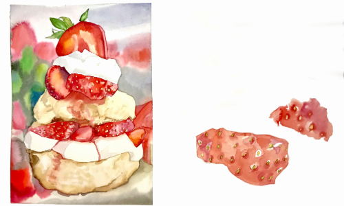 This course will cover basic watercolour principles which can be used together to paint delicious food imagery. There is so much beauty to be found in what we eat and how it's prepared. From the humble sweet potato to the most delicate macaron. In this course, we will use the magical medium of watercolour to create delicious artwork that makes mouths water. A variety of techniques will be applied: wet-on-dry, wet-on-wet, glazing, negative painting, layering, and more. Carefully detailed renderings, as well as more free and flowing compositions, will be explored, using both photo references and actual subjects. Students are expected to have some experience with watercolour painting.